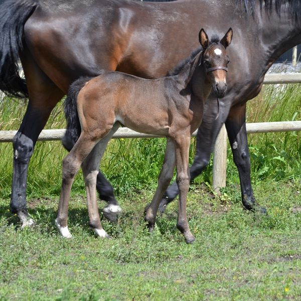 Out of a Connaisseur mare, Moose carries top dressage bloodlines, which paired with his sire's impressive hunter/jumper lineage makes him an exciting prospect. His dam's sire is renowned for passing on quality movement and kind, rideable minds-- traits Moose proudly embodies. With his temperament, athletic ability, and curb appeal, this colt is destined for success in the hunter, jumper, equitation or dressage rings.